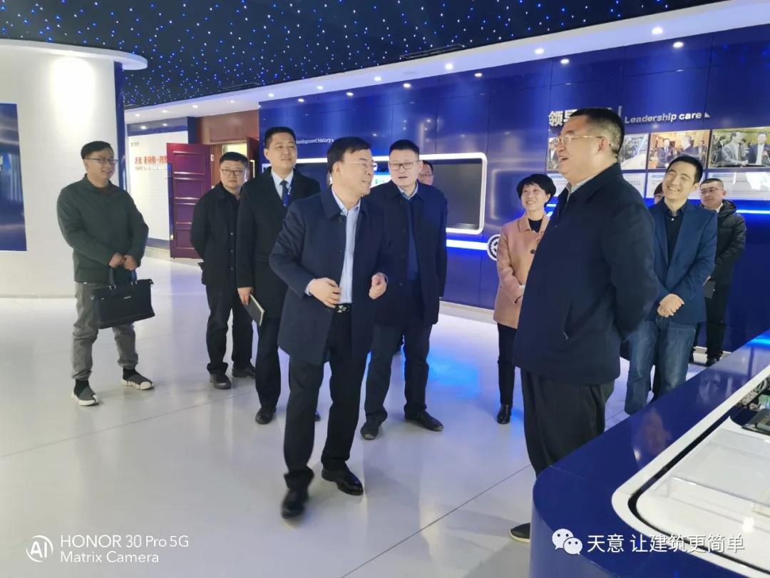 2021年2月23日, 市住建局黨組成員、副局長趙羽,市住建局節能與科技科科長孫新魯等領導一行,在區住建局局長鄒紅, 區住建局行業發展科科長馬特等領導的陪同下,蒞臨天意座談并考察指導工作。天意機械董事長劉洪彬,總經理劉海龍,國內銷售部經理秦艷慧等領導參加了座談調研,并陪同參觀了天意省級研發中心、科技體驗館、BIM技術在裝配式建筑中的創新應用情況等。