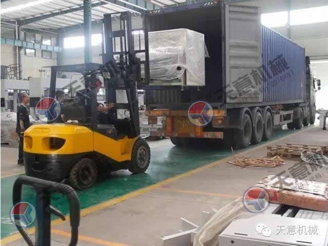 為加快臺灣綠色建筑建材市場快速發展,9月20日,天意機械為臺灣客戶定制的一套保溫裝飾一體化板生產線成功裝車發往臺灣。