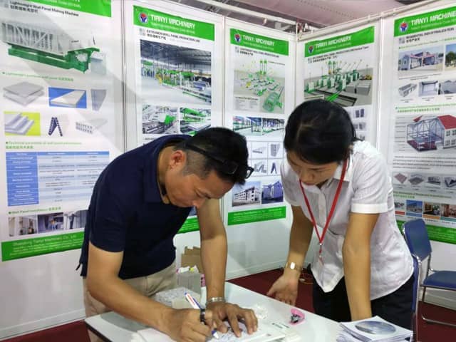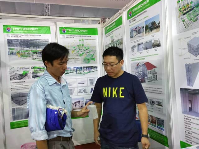 越南是亞洲經(jīng)濟(jì)發(fā)展速度的國(guó)家之一。近年來(lái),越南正加大對(duì)基礎(chǔ)設(shè)施建設(shè)和主要城市居民住宅的改造力度,綠色建筑建材裝備缺口巨大,為適應(yīng)市場(chǎng)需求,天意機(jī)械攜綠色建材設(shè)備參展了此次展會(huì)。展會(huì)期間,外貿(mào)銷(xiāo)售部李經(jīng)理,認(rèn)真對(duì)待每位來(lái)訪的客戶,詳細(xì)向其介紹天意機(jī)械專(zhuān)利產(chǎn)品輕質(zhì)墻板生產(chǎn)線,復(fù)合墻板生產(chǎn)線,保溫裝飾一體化板生產(chǎn)線等產(chǎn)品的優(yōu)勢(shì),以及設(shè)備在東南亞地區(qū)建筑建材市場(chǎng)的影響,展會(huì)現(xiàn)場(chǎng)就有多數(shù)客戶,初步簽訂了輕質(zhì)墻板生產(chǎn)線、復(fù)合墻板生產(chǎn)線加工生產(chǎn)訂單。