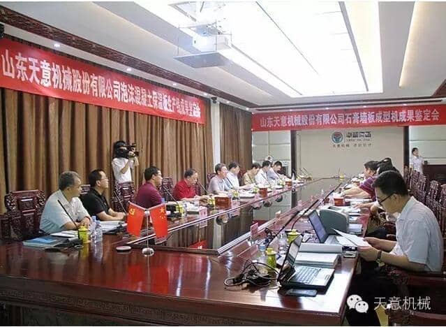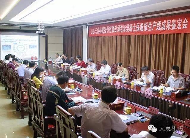 為加快產(chǎn)業(yè)結(jié)構(gòu)轉(zhuǎn)型升級,突出科技創(chuàng)新驅(qū)動企業(yè)發(fā)展,7月23日,由山東省機(jī)械工業(yè)協(xié)會處長李玉奎帶隊(duì)一行領(lǐng)導(dǎo)專家,蒞臨天意機(jī)械組織召開 "泡沫混凝土保溫板生產(chǎn)線” 和 “石膏墻板成型機(jī)” 科技成果鑒定會。濟(jì)寧市兗州區(qū)副區(qū)長周詠輝,集團(tuán)董事長劉洪彬、技術(shù)總監(jiān)陳維國等領(lǐng)導(dǎo)出席了本次會議。