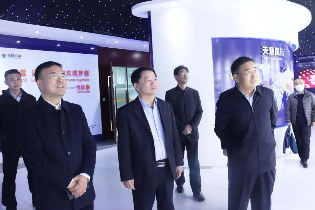 蔣萬云一行先后對天意機械高層次人才工作站、科技體驗館、紅領(lǐng)天意黨建展館、數(shù)字化車間等處進行走訪。他們邊走邊問詢,邊看邊交流,深入了解了檢察機關(guān)在服務(wù)和保障民營企業(yè)健康發(fā)展方面發(fā)揮出的重要作用。