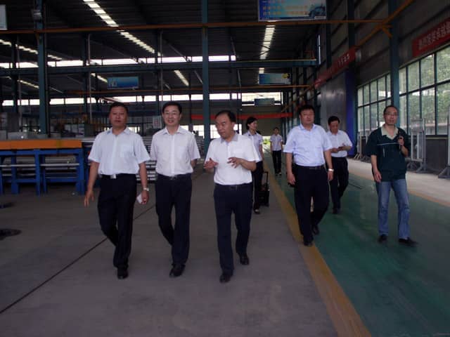 市領導先后參觀了我公司的6A辦公大樓、省級研究中心、體驗館、樣板別墅、集成房屋、設備生產車間以及鋁型材加工基地。每到一處,市領導都仔細詢問了技術與生產等相關問題。