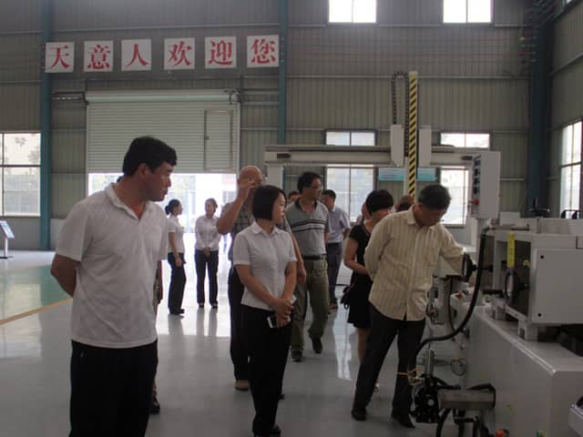 緊接著,參觀了天意樣板別墅、集成房屋、設備生產車間、鋁型材加工基地。專家領導團對我公司擁有的先進助力建筑垃圾廢棄物資源化利用的擠壓墻板生產線給予了高度評價。