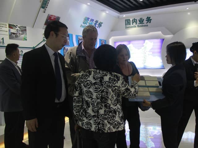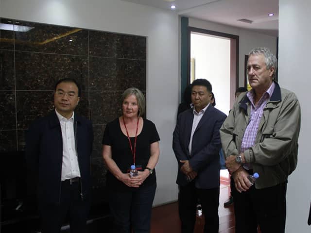 4月26日  澳大利亞外賓、山東大學材料科學與工程學院任教授、兗州區周區長一行蒞臨天意機械參觀指導,集團董事長劉洪彬、副總經理、戰略項目部部長孫為民、銷售經理秦艷慧等全程陪同參觀。