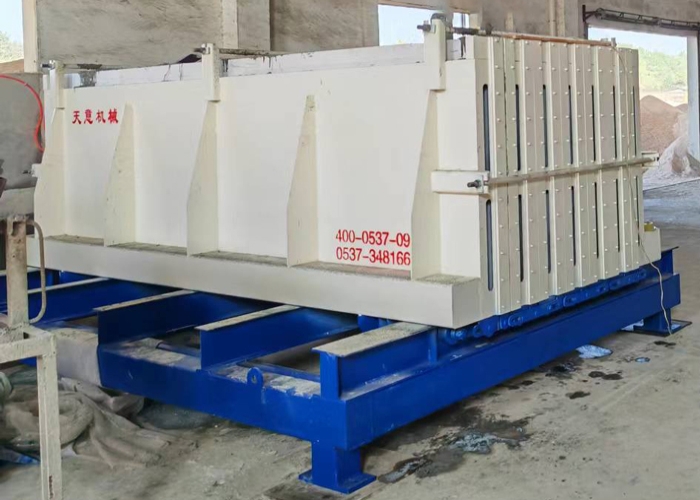 工作原理:模具的開合由下方的液壓機構完成,和墻板機類似。合模后的鎖緊由上方和兩端的拉桿裝置實現。下方的強制同步裝置保證了大板在開合時的兩側同步。大板下方的輪組保證了大板在開合時不傾斜、不倒伏。
