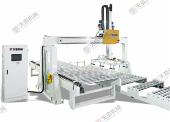 適用于硅酸鈣板、水泥纖維板、玻鎂板、裝飾板等板式工件,配套連線作業時進行自動上料或下料;自動電腦控制人機界面觸摸式顯示屏:調整故障顯示,運行速度,往覆速度,修正參數,顯示工作狀態;吸盤機真空發生器采用德國 SCHMALE;采用日本安川電機和伺服控制系統。