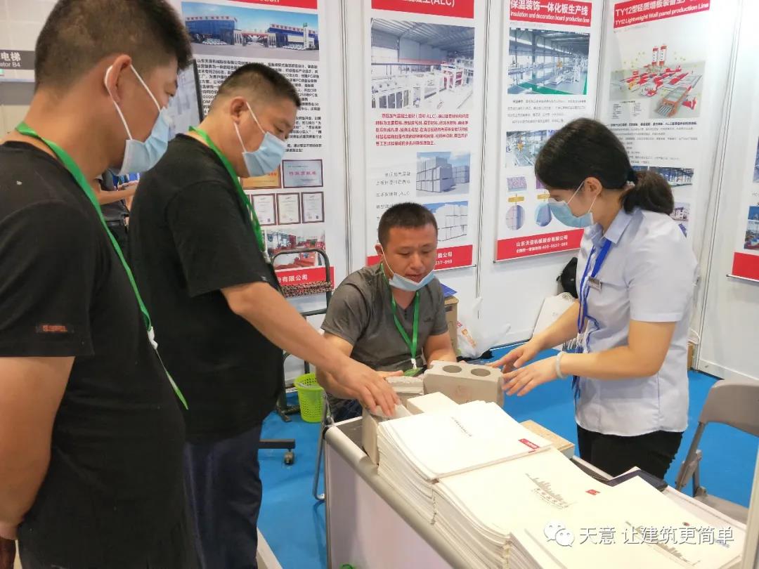天意機械派出了公司優秀的銷售團隊參與了此次盛會,展示了天意機械以及特博特的整體裝備,包括墻板設備、保溫裝飾一體化、PC裝備、ALC墻板板材安裝施工工具。